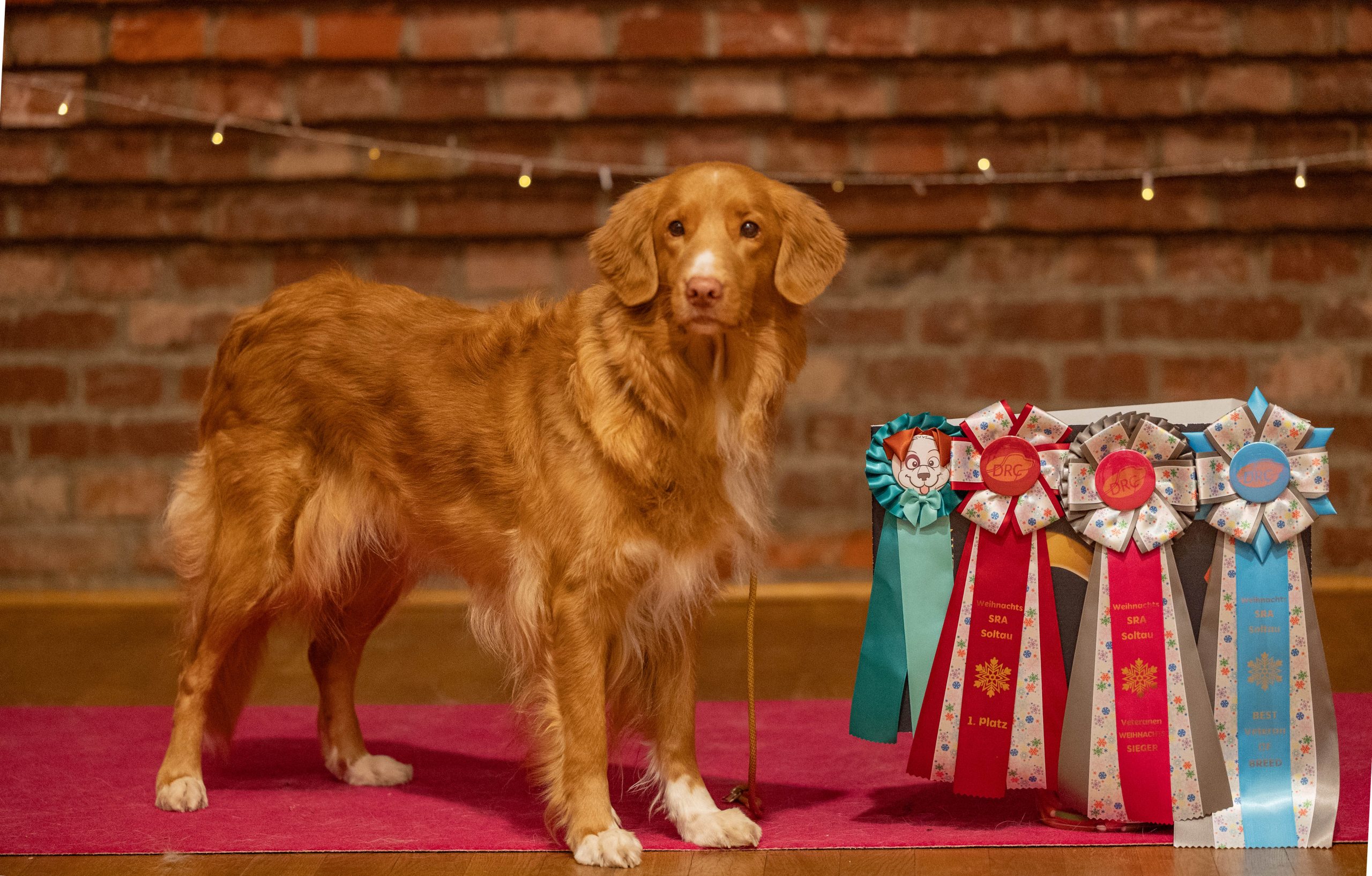 Ella ist ein sanfter und äußerst freundlicher Hund, dem man zu hundert Prozent vertrauen kann. Sie ordnet sich unter und trägt keinen Konflikt aus. Mit Artgenossen ist sie sehr verspielt, spielt aber auch gerne mit sich alleine und z.B. einer Socke. Da kann sie sehr ausdauernd sein. Sie ist leichtführig und arbeitet nicht schnell, aber souverän und leise. Sie erkundet ihre Welt vor allem mit ihrer Nase, dabei vergisst sie alles um sich herum, ist aber ansprechbar. Sie ist eine kleine Träumerin, die das Kuscheln, insbesondere mit Herrchen, liebt. Sucht man sie, liegt sie wahrscheinlich im Bett. Sie ist schnell zu beeindrucken und manchmal etwas erschrocken, lässt sich aber heran führen. Im Alltag ist sie bei Begegnungen oder beim Warten noch etwas aufgeregt, sie ist allerdings ja auch noch jung und benötigt hier mehr Training.